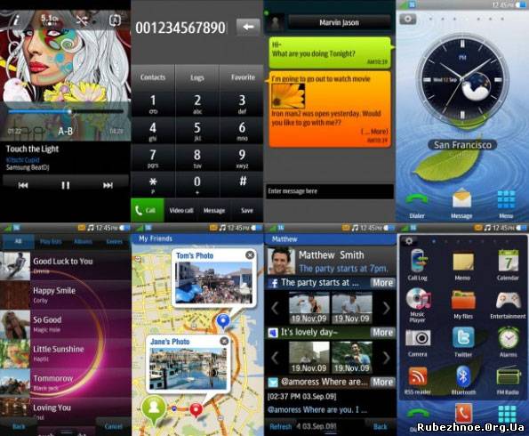Сегодня в сети стали доступны первые скриншоты Bada OS. Здесь мы последовательно видим интерфейс таких приложений, как медиапроигрыватель, набор номера, меню сообщений и режим ожидания (он же рабочий стол), который оснащен фирменным интерфейсом Sense. Глядя на скришоты, видно, что новая платформа использует интерфейс TouchWiz, который и сейчас активно используется на сенсорных телефонах южнокорейской компании, и несколько похож на SymbianOS. Отсюда возникает вопрос, в чем же тогда особенность новой операционной системы.
